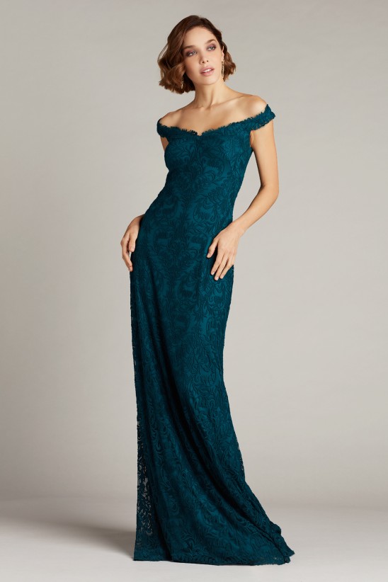 This embroidered tulle gown delights the eye with an off-the-shoulder neckline, fitted bodice, and a fluid A-line skirt that falls into a floor-sweeping hem. At once effortless, this style is as easy to wear as it is timeless. Lined. Concealed back zip. Approx. Length from High Point Shoulder to Hem is 59" Measurements are taken from size 8 / M Dry Clean Imported If you are unfamiliar with our sizing, we suggest you refer to our Size Guide to find your best fit.