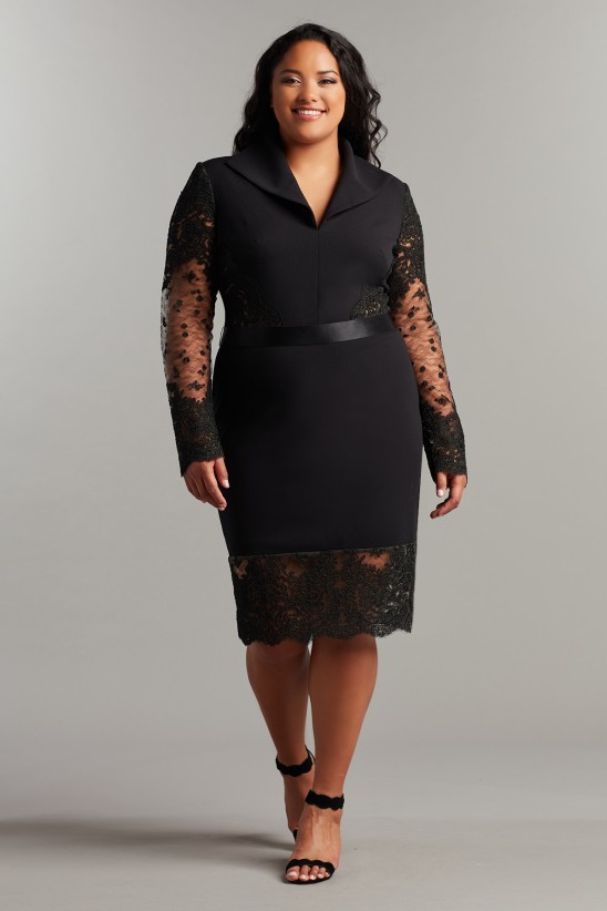 details Exquisite tailoring, cord-embroidered tulle accents, and a nipped waist define a commanding textured crepe dress that pairs sartorial elegance with an impeccable fit. " Approx. Length from High Point Shoulder to Hem is 43 1/2" Measurements are taken from size 18Q/2X Dry Clean Imported If you are unfamiliar with our sizing, we suggest you refer to our Size Guide to find your best fit."