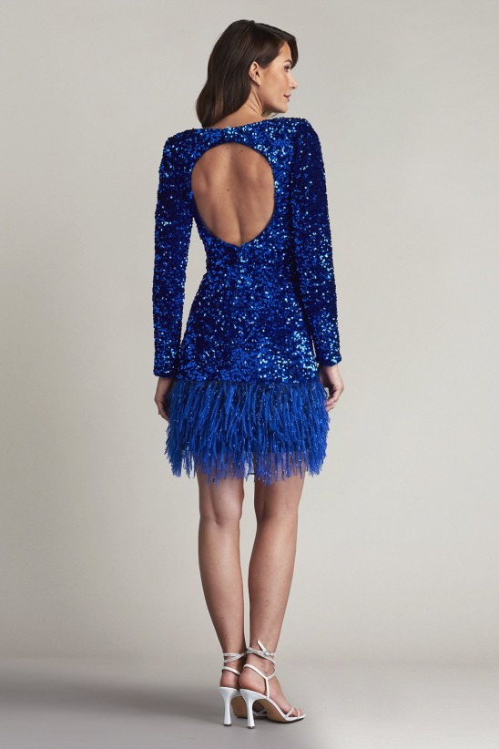 details This open-back mini pairs sequin-stitched velvet with metallic-flecked eyelash yarn for a luxurious take on night-out dressing. This style is from our diffusion line SHO. Sequin-stitched velvet Metallic-flecked eyelash yarn Boatneck Long sleeves Low-profile shoulder pads Open Back Hidden zip Stretch lining If you are unfamiliar with our sizing, we suggest you refer to our Size Guide to find your best fit.