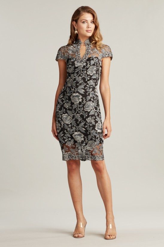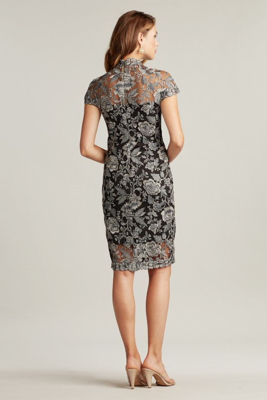 This floral tulle-embroidered dress is an updated classic that packs a punch. It has an illusion neckline with a keyhole-inspired cutout, a tailored fit, cap sleeves, and a peekaboo knee-length hem. Stretch lining. Concealed back zip. Approx. Length from High Point Shoulder to Hem is 42 1/2" Measurements are taken from size 8 / M Dry Clean Imported If you are unfamiliar with our sizing, we suggest you refer to our Size Guide to find your best fit.